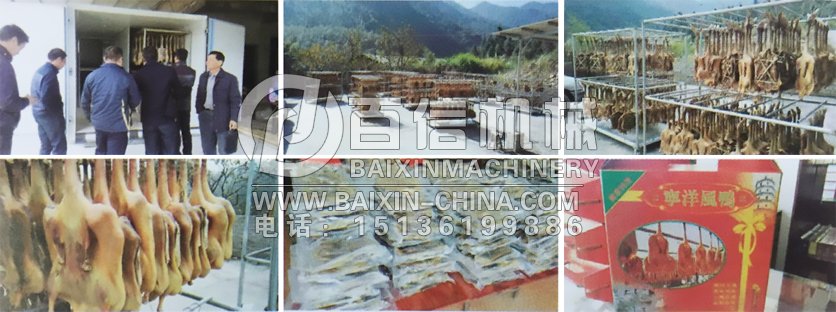 該項目位于福建省漳平市雙洋鎮寧洋土特產風鴨基地,該基地年制做風鴨1萬多只,主要產品為“寧洋風味腌鴨”、鴨肉等,客戶之前采用傳統烘烤房設備,不僅產量低而且能耗高、效率低、24小時生產還得配置8個勞動力, 終年產約2千多只風鴨,2014年其基地產量跟不上,改為1套空氣能熱泵烘干房用于風鴨,臘肉烘干,烘房尺寸5.2*2.5*2.2m,采用一臺6p整體式烘干除濕機,可節省4個勞動力,年產量提升5倍多,目前運行狀況均良好,除常規維護外無任何質量方面的問題,客戶十分滿意。