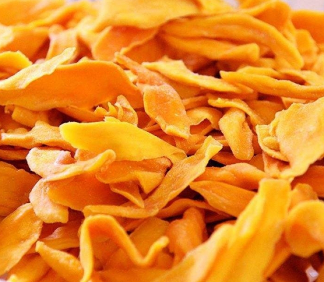 去皮切片:外皮必須去凈,因果皮中含有較多的單寧,如未削凈,在加工過程中容易產生褐變,影響成品色澤。去皮后的果實用鋒利刀片縱向切片,厚度約為8~10mm。芒果片護色期間添加白砂糖,一層芒果片一層砂糖,上面還要覆蓋一層砂糖。砂糖腌制時間不能太長,一般為8小時,過后抽出糖水,把糖水入鍋濃縮,再將果塊倒入糖水中,如果砂糖不夠還可以補加,使糖水濃度達到45%~60%。注意芒果片不能直接煮制。浸泡糖液初始溫度30左右為宜。浸漬過程的添加成份均要求符合食品衛生標準。將芒果片小心取出,瀝干水分后,均勻的擺在烘干托盤上,之后放入烘干房里干燥。一段:時間4H,溫度45,濕度控制在65%。二段:時間6H,溫度55,濕度控制在42%。第三段:時間2H,溫度62,濕度控制在26%。時間運行結束即可保證芒果干烘干完畢。