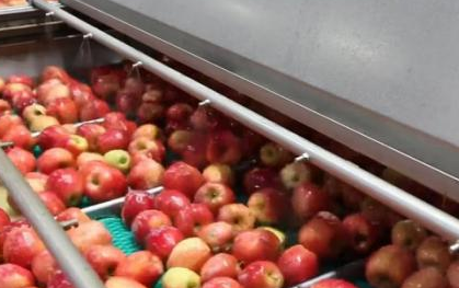 2、水洗:用平行毛輥清洗機(jī)沖洗蘋(píng)果,將蘋(píng)果上的殘留物及雜質(zhì)清洗干凈;